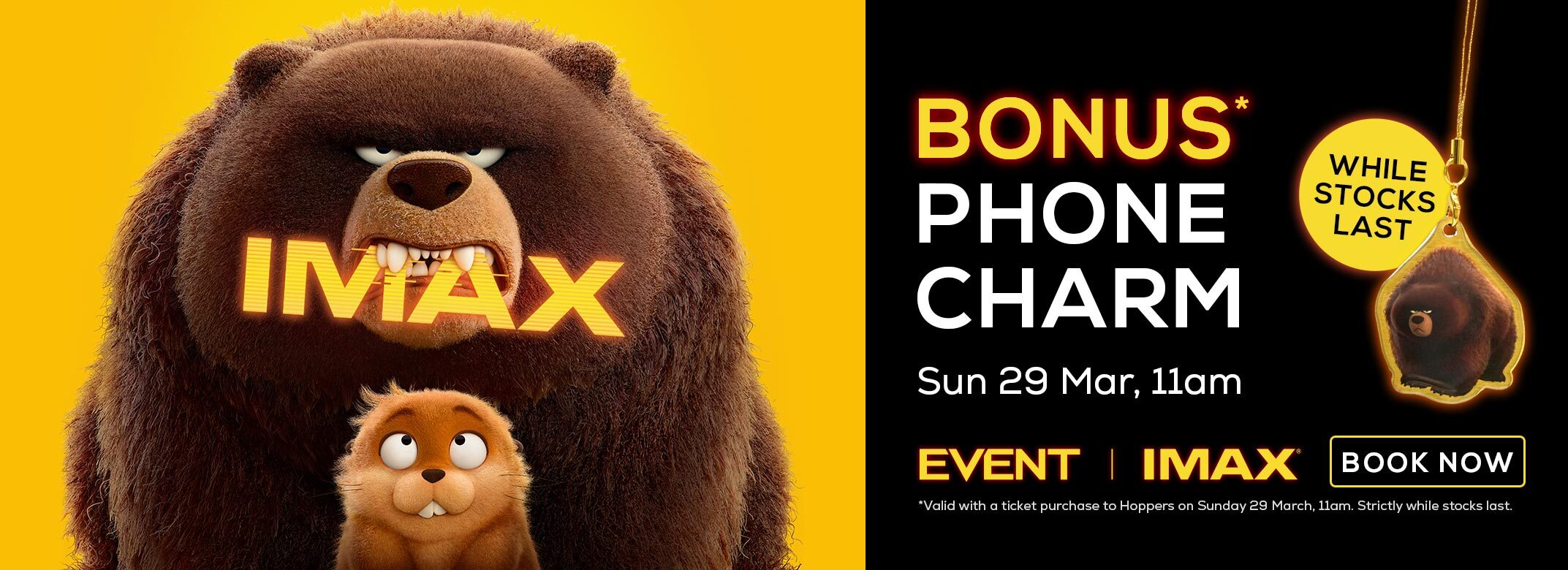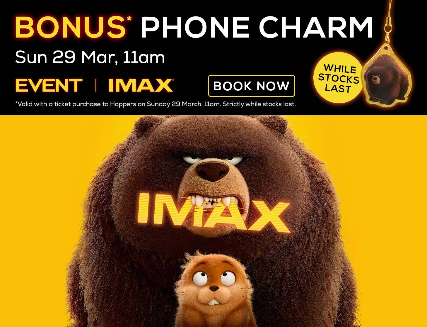 *Limited to one Hoppers Phone Charm per ticket holder. Collection of the Phone Charm is available on arrival of booked IMAX session to Hoppers on Sunday 29 March at 11am. There are five assorted designs which will be randomly distributed. Strictly while stocks last. Product may vary and change without notice.
